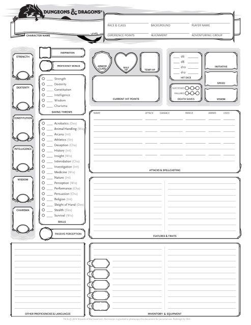 Dungeons and Dragons (2017). Character sheets. Available: http://dnd.wizards.com/articles/features/character_sheets [September 6, 2017].