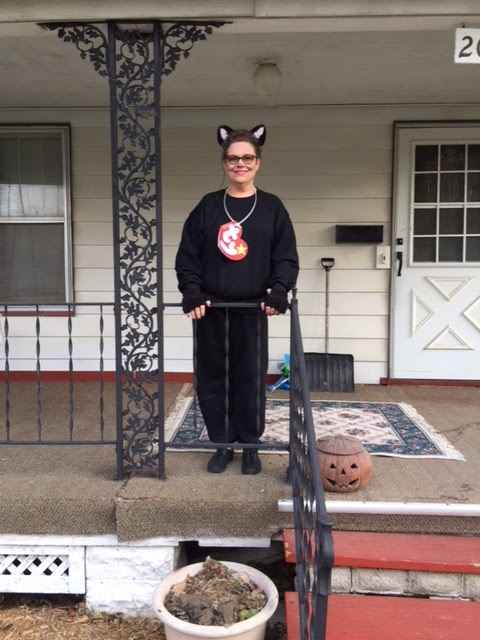 I often dress up as cats. I have dressed up as my cat Kitty; a playful cat with Richard as Responsible Cat Owner to collect pet goodies for the Humane Society, and now as a Beanie Baby.