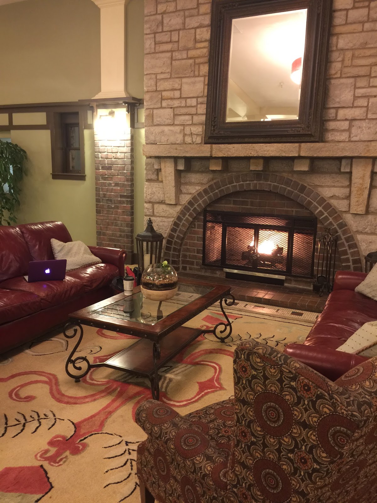 My husband and I got into the Elms at about 2 PM yesterday. Our room wasn’t ready, and it was cold, so we sat by the fireplace.