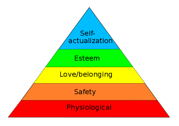 According to Abraham Maslow, psychologist, humans have a hierarchy of needs. The model (which everyone who has ever taken a psychology class will recognize) looks like this: