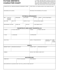 This sheet has so much detail, it would almost work as an intake assessment form in case management — all it’s missing is the mental status exam. I think I could use this form while discussing with my husband the fine points of a character over a three-hour coffee date. On the other hand, I have a novel with 65 characters, for which I have at least partial character sheets. Imagine filling this doc out for 65 characters!