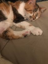 Meemerz was a one-person cat for much of the time, and that one person was me. She would hiss and bite Richard, until one day she warmed up to him and became our cat.