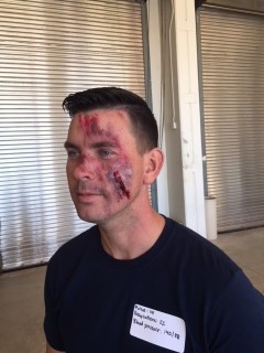 I am entirely self-taught. I was recruited for moulage crew as an assistant in Missouri Hope (one of the CHSE exercises below) in 2013. I dithered around a lot, and the next year I was recruited as the moulage coordinator for Missouri Hope. With absolutely no real training, I studied injury pictures and makeup and that DVD from Simulaids where they practice all the techniques on a straight-faced student.