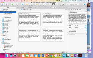 I use a template when writing because I feel somewhat impaired by linear storytelling. There is an expectation of when things are supposed to happen in a book, and a template helps with that. For example, in the next part of the book, there’s supposed to be a debate over the future action in the plot: “You should not do the thing.” “Why should I not do the thing?” “Bad things will happen if you do the thing.” (And the protagonist does the thing, and everything goes wrong, and the protagonist’s hubris gets them killed. This is known as a tragedy. I don’t write tragedies. Yet.)