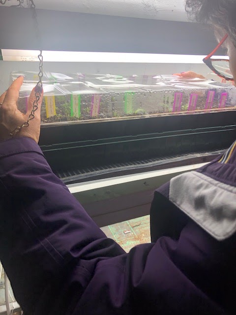 Right now, the tomato/eggplant/pepper plants are partying on the top shelf with the cardoon which I thought I wouldn’t get to grow. The perilla seedlings are numerous and vigorous. Hablitzia, yarrow, pinks, and savory are popping up a little more leisurely, and I still can’t get sea kale to grow from seed. The basil — I’m a basil fanatic, but I still may have to give some away. That’s not all the seed flats — I am nearly out of room on my plant shelves, and there’s a dwarf lemon tree I hope gives me lemons for lemonade someday.