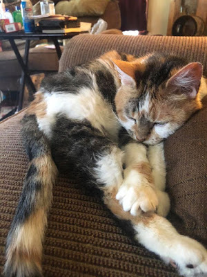 Monday morning, which seems a lot like every other day in this pandemic — I have two cats at my workstation (the corner of the loveseat in the living room), and I’m drinking coffee.